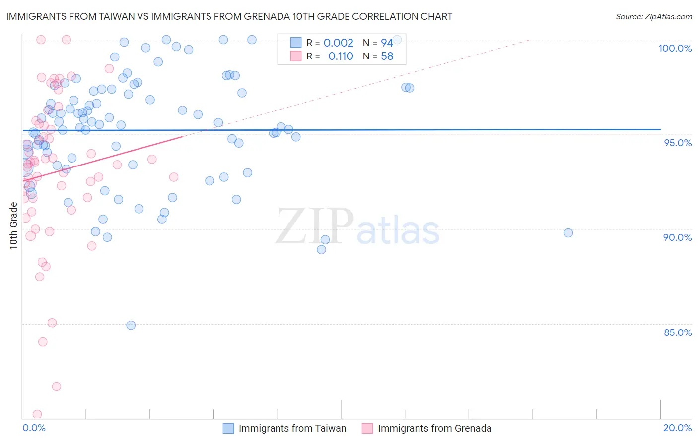 Immigrants from Taiwan vs Immigrants from Grenada 10th Grade Correlation Chart