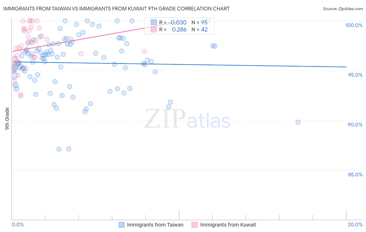 Immigrants from Taiwan vs Immigrants from Kuwait 9th Grade Correlation Chart