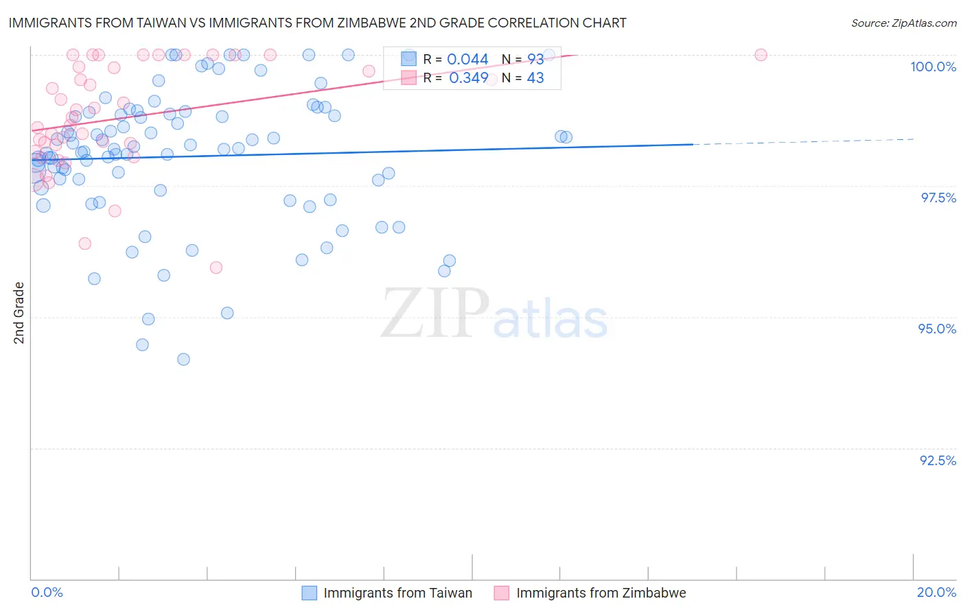 Immigrants from Taiwan vs Immigrants from Zimbabwe 2nd Grade Correlation Chart