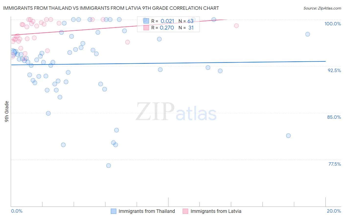 Immigrants from Thailand vs Immigrants from Latvia 9th Grade Correlation Chart