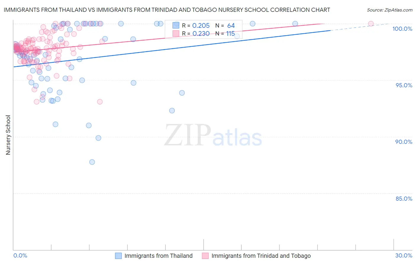 Immigrants from Thailand vs Immigrants from Trinidad and Tobago Nursery School Correlation Chart