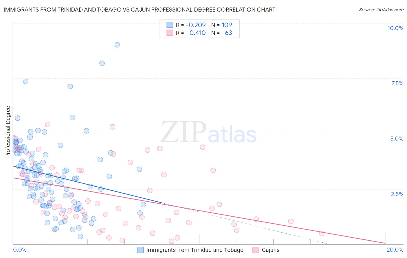 Immigrants from Trinidad and Tobago vs Cajun Professional Degree Correlation Chart