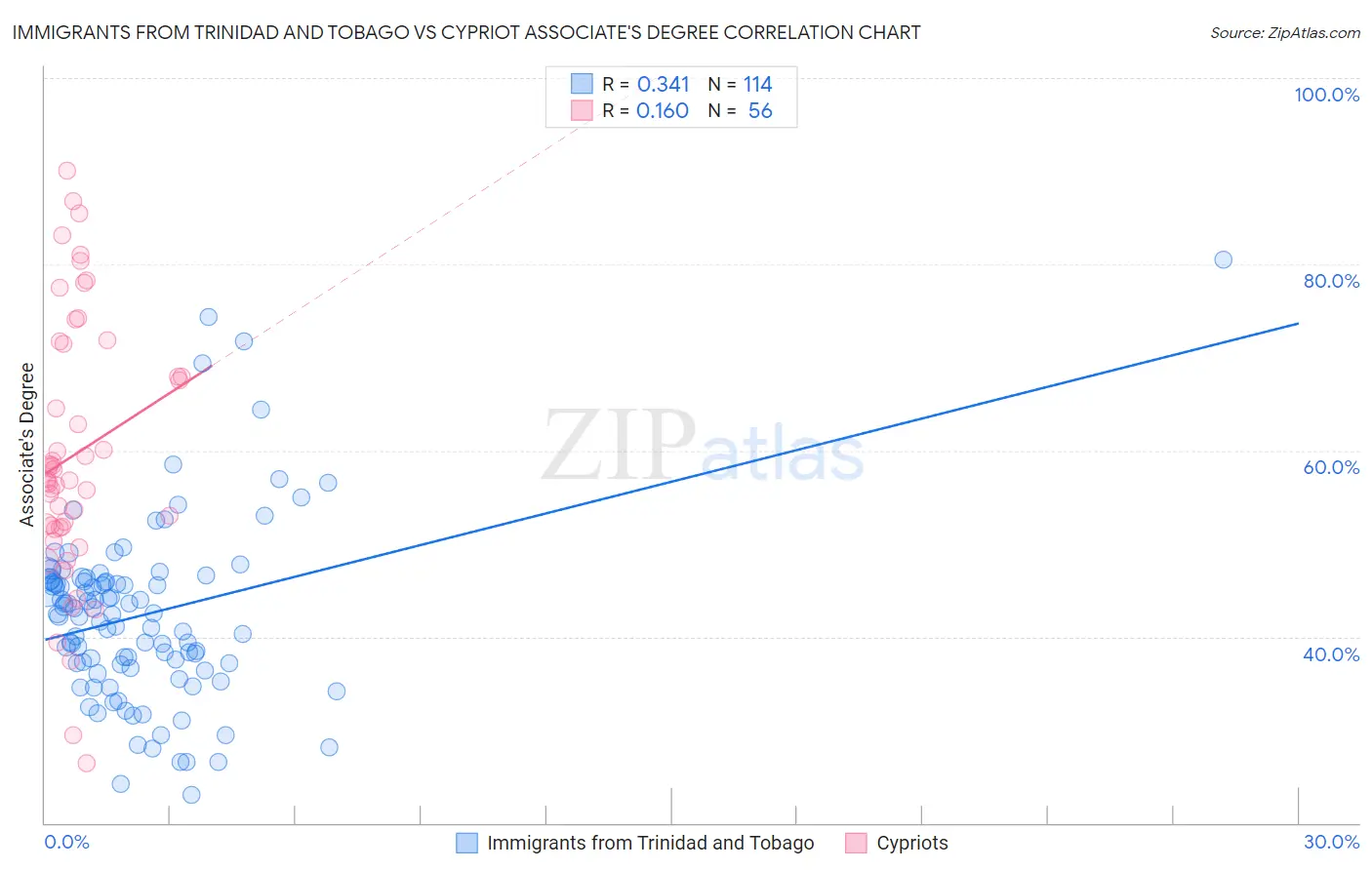 Immigrants from Trinidad and Tobago vs Cypriot Associate's Degree Correlation Chart
