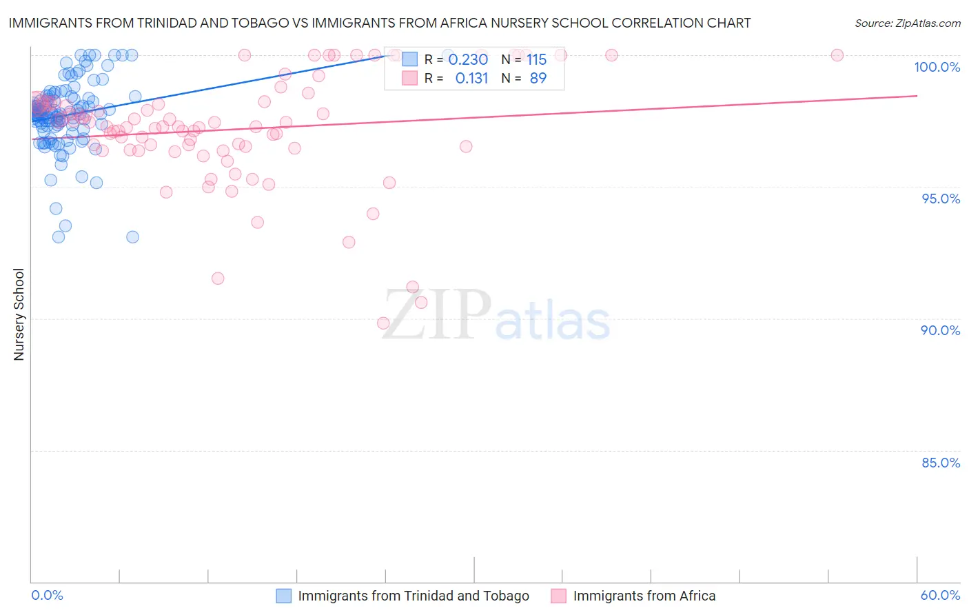 Immigrants from Trinidad and Tobago vs Immigrants from Africa Nursery School Correlation Chart