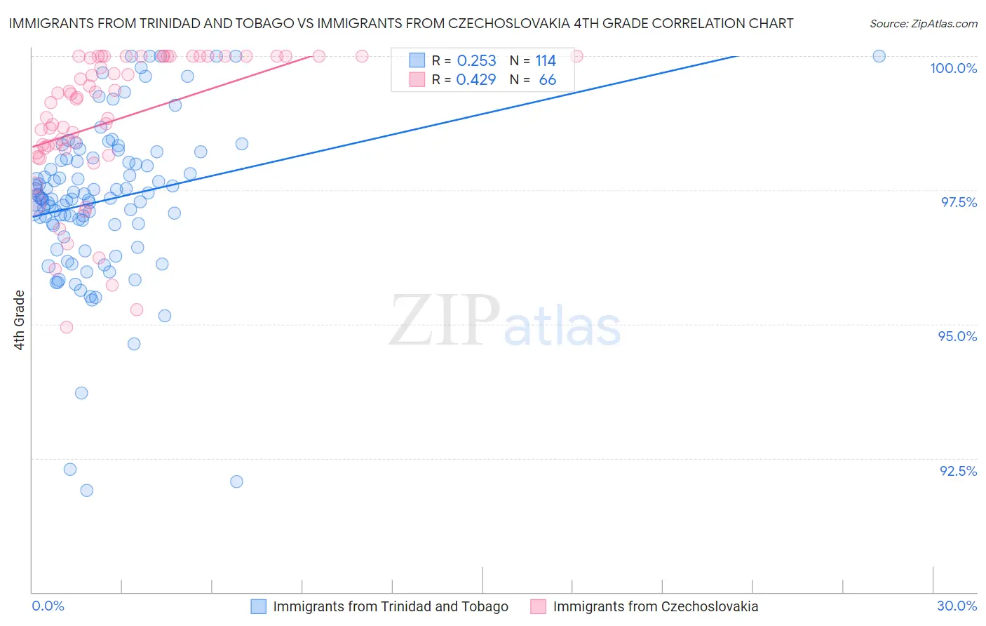 Immigrants from Trinidad and Tobago vs Immigrants from Czechoslovakia 4th Grade Correlation Chart