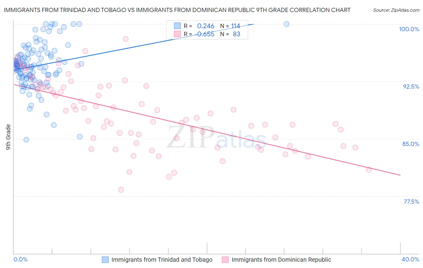 Immigrants from Trinidad and Tobago vs Immigrants from Dominican Republic 9th Grade Correlation Chart
