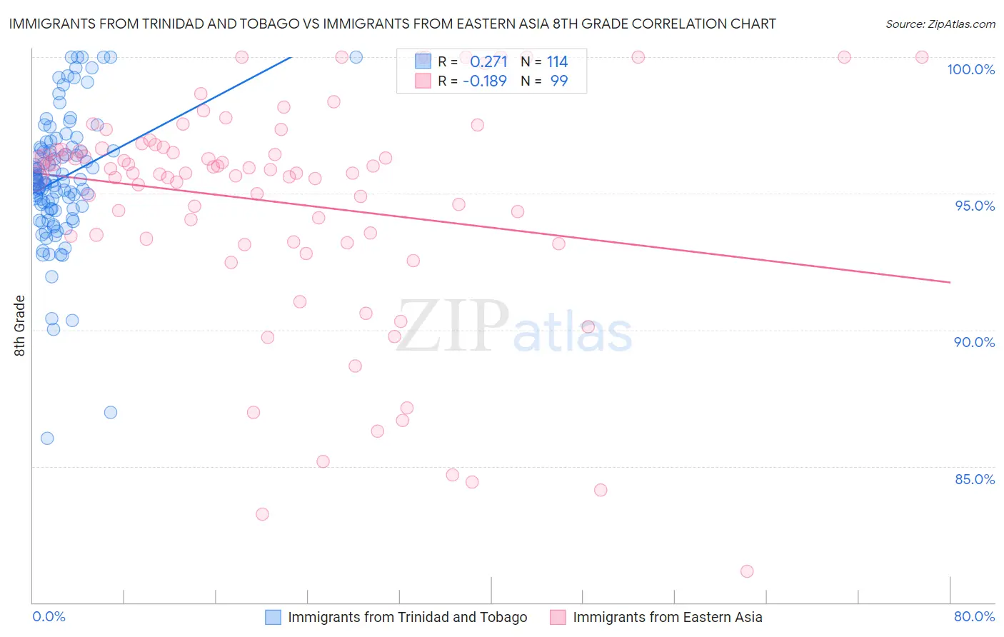 Immigrants from Trinidad and Tobago vs Immigrants from Eastern Asia 8th Grade Correlation Chart