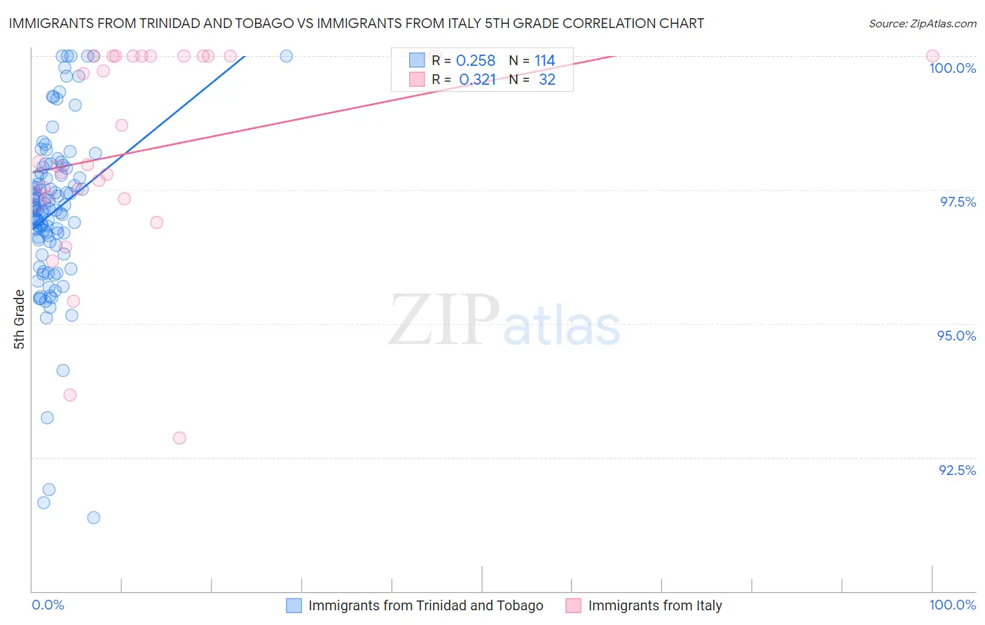 Immigrants from Trinidad and Tobago vs Immigrants from Italy 5th Grade Correlation Chart
