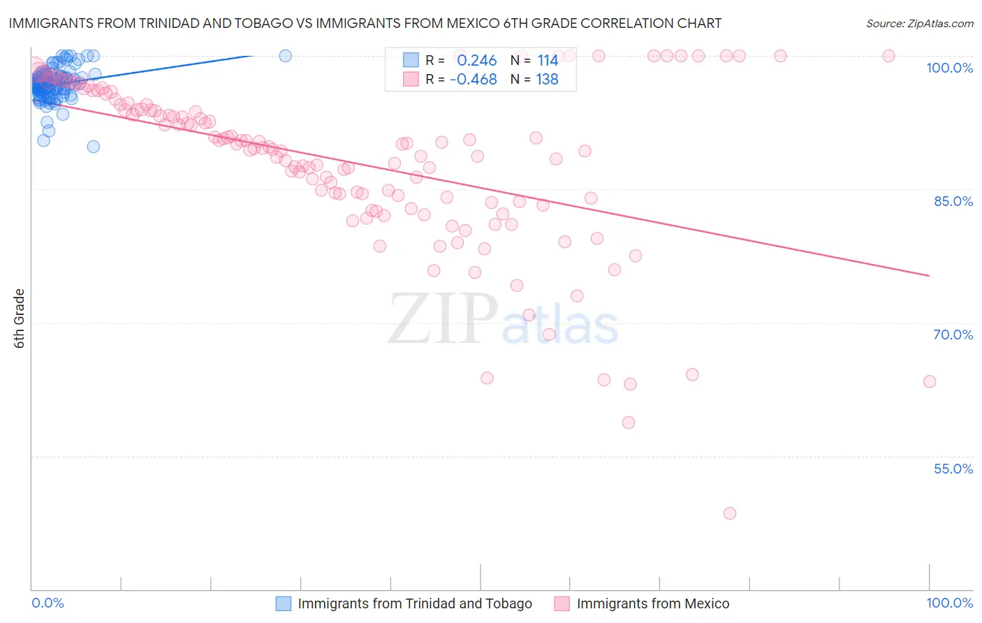 Immigrants from Trinidad and Tobago vs Immigrants from Mexico 6th Grade Correlation Chart