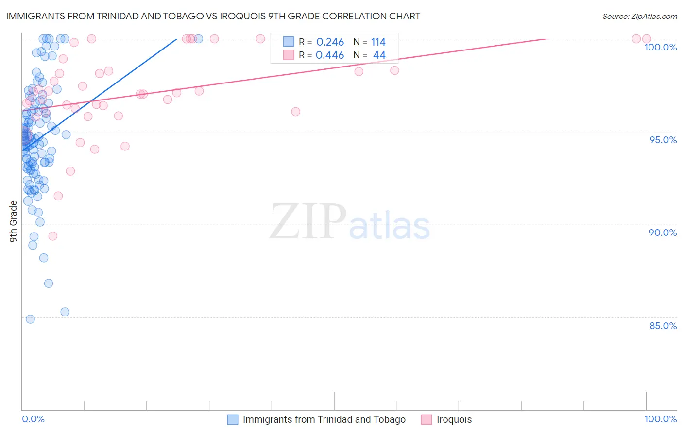 Immigrants from Trinidad and Tobago vs Iroquois 9th Grade Correlation Chart