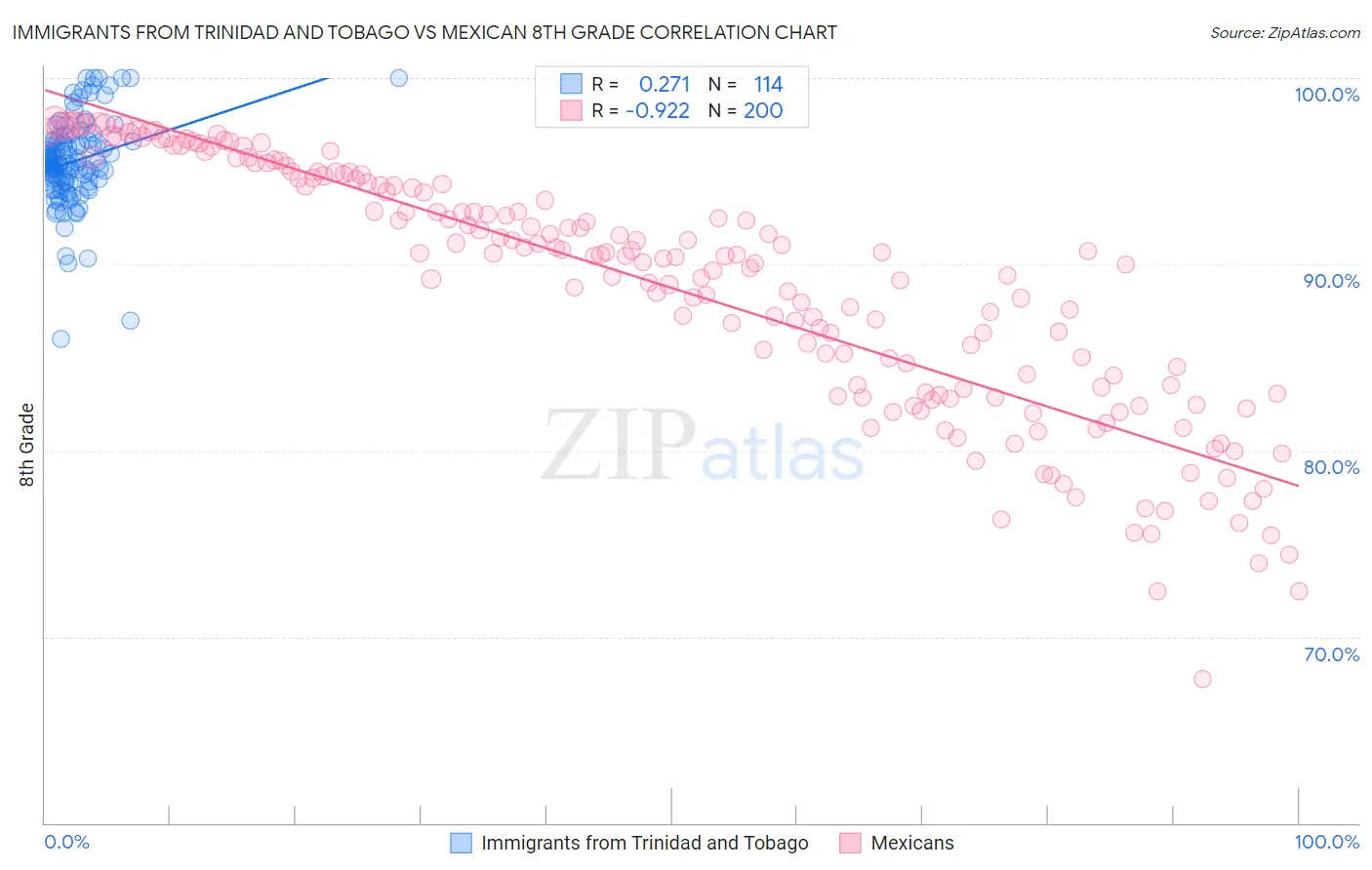 Immigrants from Trinidad and Tobago vs Mexican 8th Grade Correlation Chart