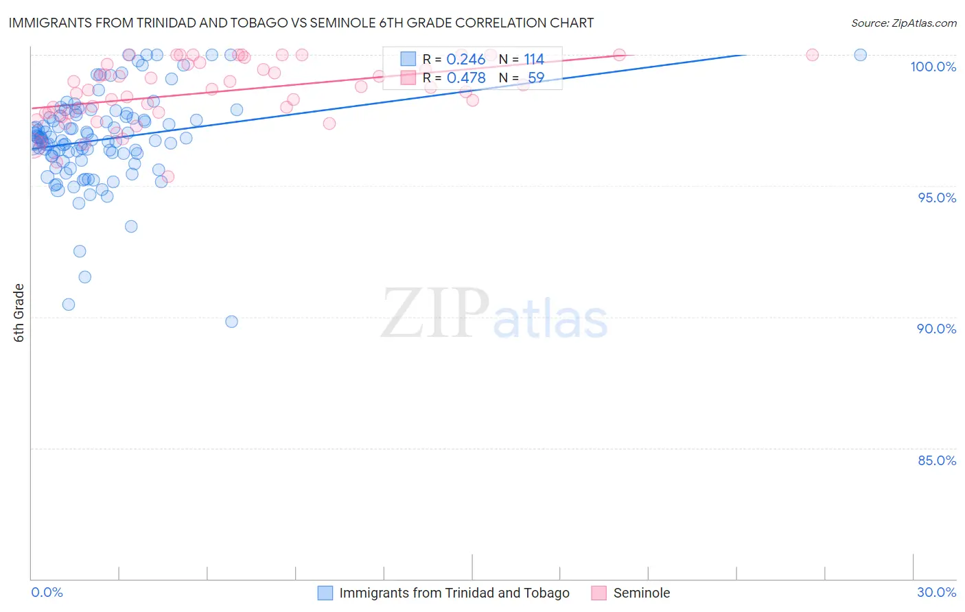 Immigrants from Trinidad and Tobago vs Seminole 6th Grade Correlation Chart