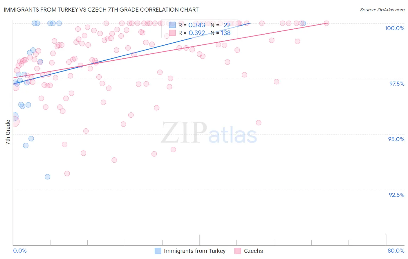 Immigrants from Turkey vs Czech 7th Grade Correlation Chart