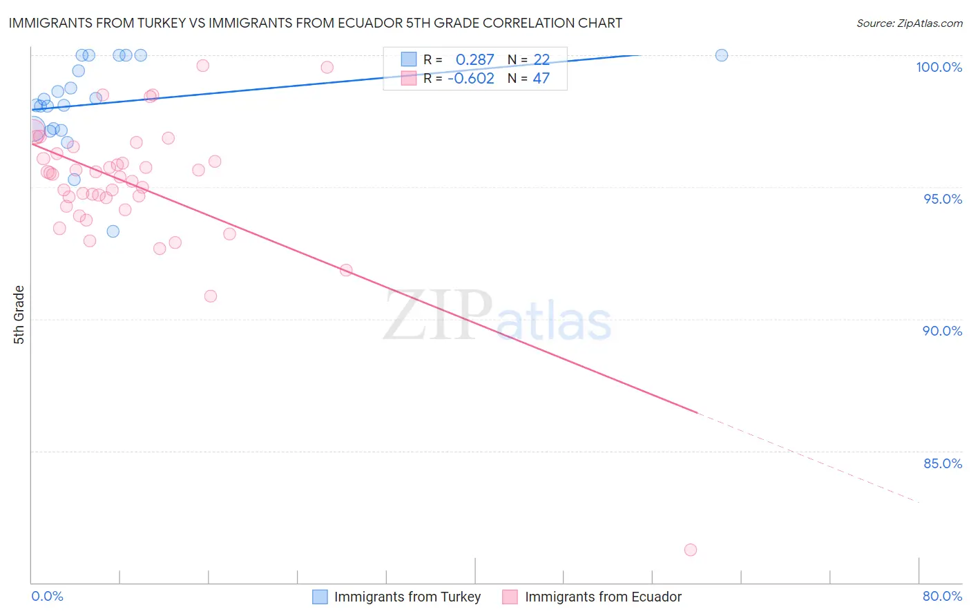 Immigrants from Turkey vs Immigrants from Ecuador 5th Grade Correlation Chart