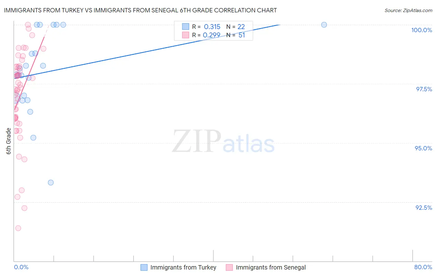 Immigrants from Turkey vs Immigrants from Senegal 6th Grade Correlation Chart