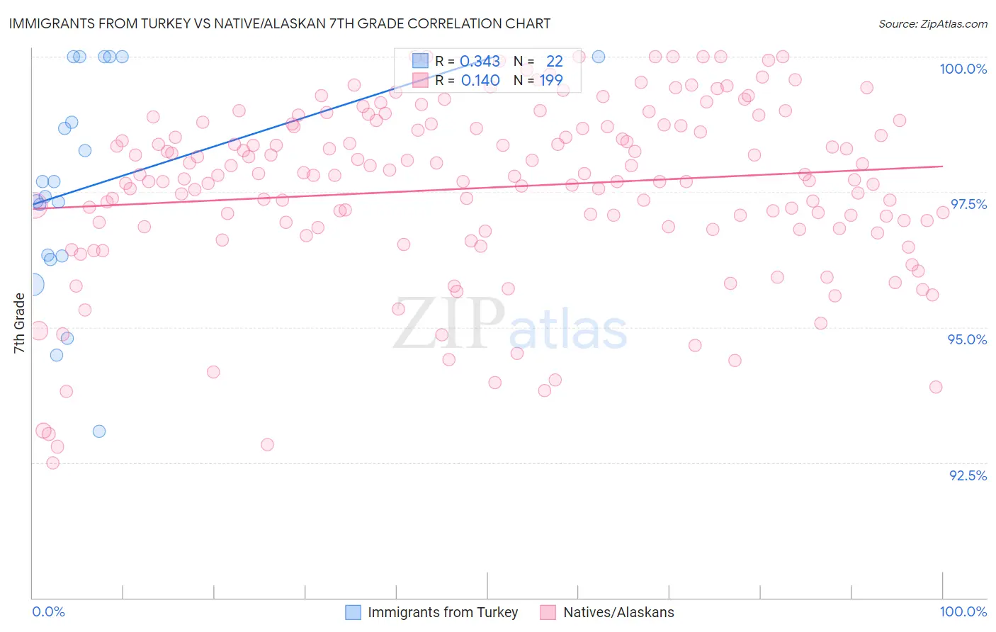 Immigrants from Turkey vs Native/Alaskan 7th Grade