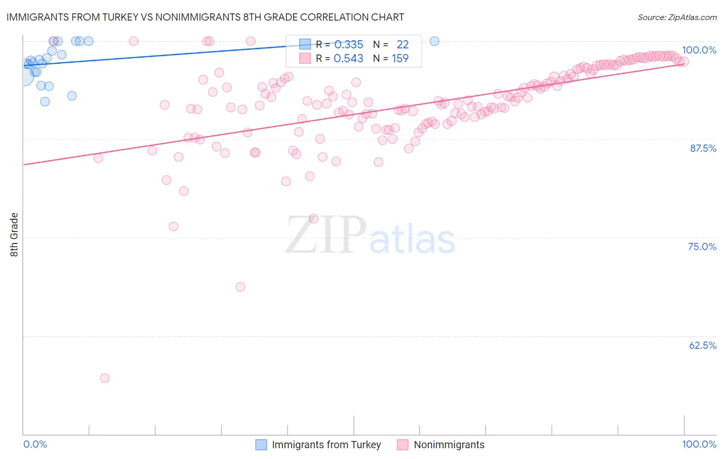 Immigrants from Turkey vs Nonimmigrants 8th Grade Correlation Chart
