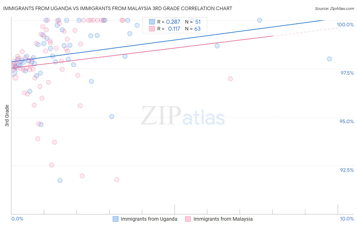 Immigrants from Uganda vs Immigrants from Malaysia 3rd Grade Correlation Chart