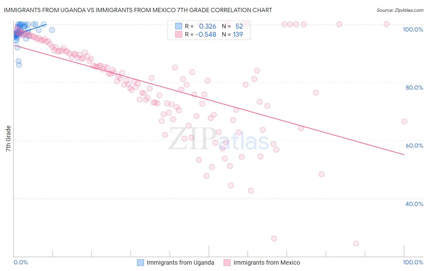 Immigrants from Uganda vs Immigrants from Mexico 7th Grade Correlation Chart