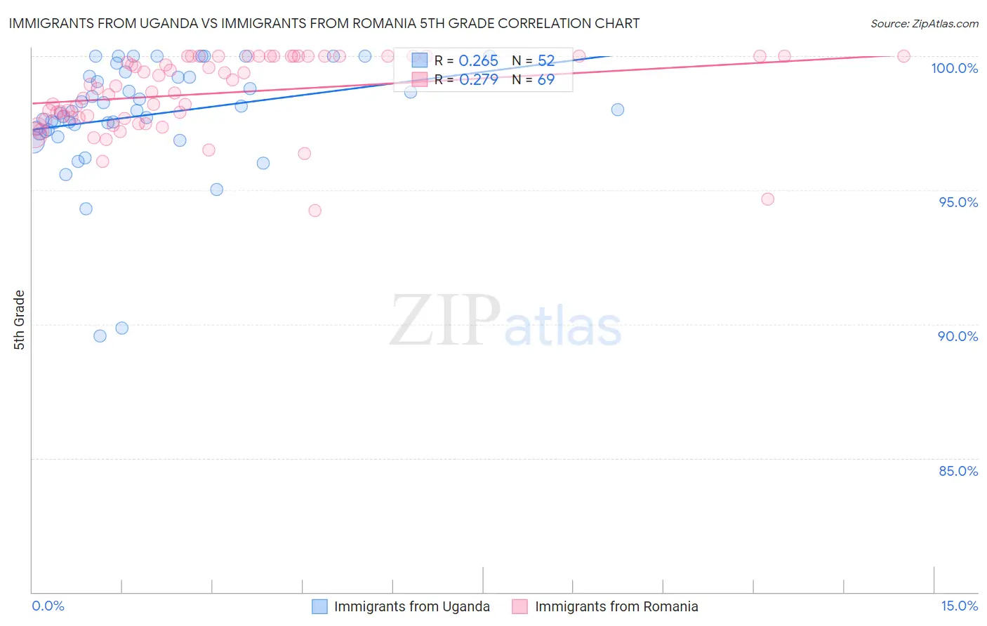 Immigrants from Uganda vs Immigrants from Romania 5th Grade Correlation Chart