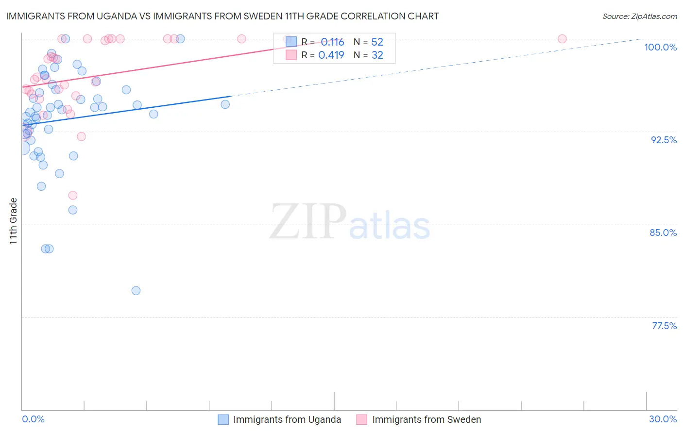 Immigrants from Uganda vs Immigrants from Sweden 11th Grade Correlation Chart