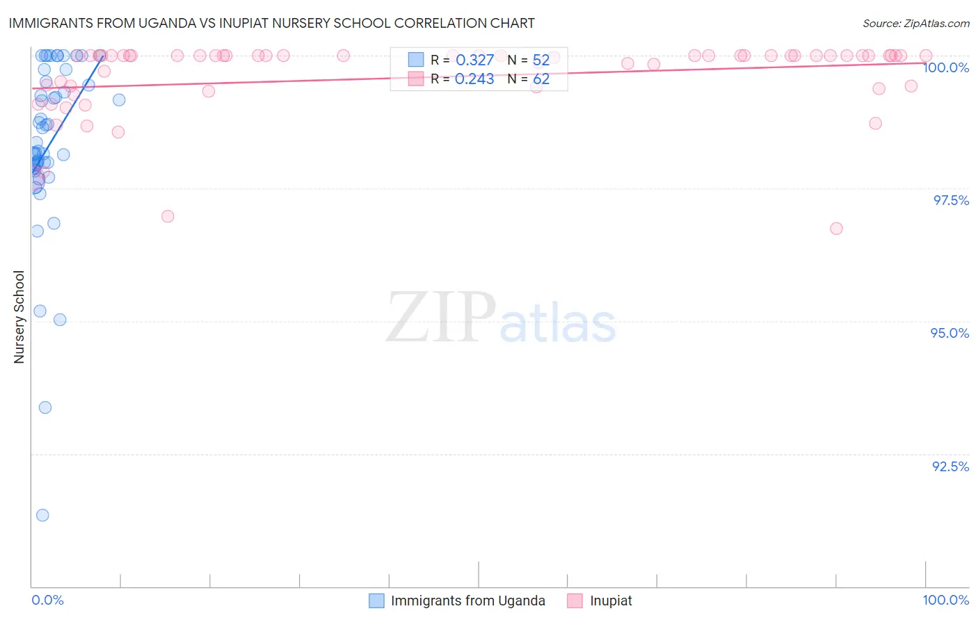 Immigrants from Uganda vs Inupiat Nursery School Correlation Chart