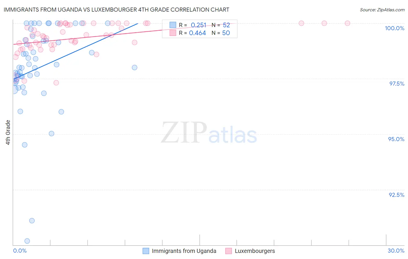 Immigrants from Uganda vs Luxembourger 4th Grade Correlation Chart