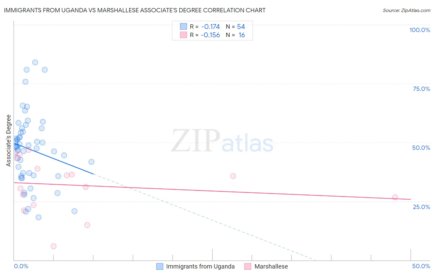 Immigrants from Uganda vs Marshallese Associate's Degree Correlation Chart