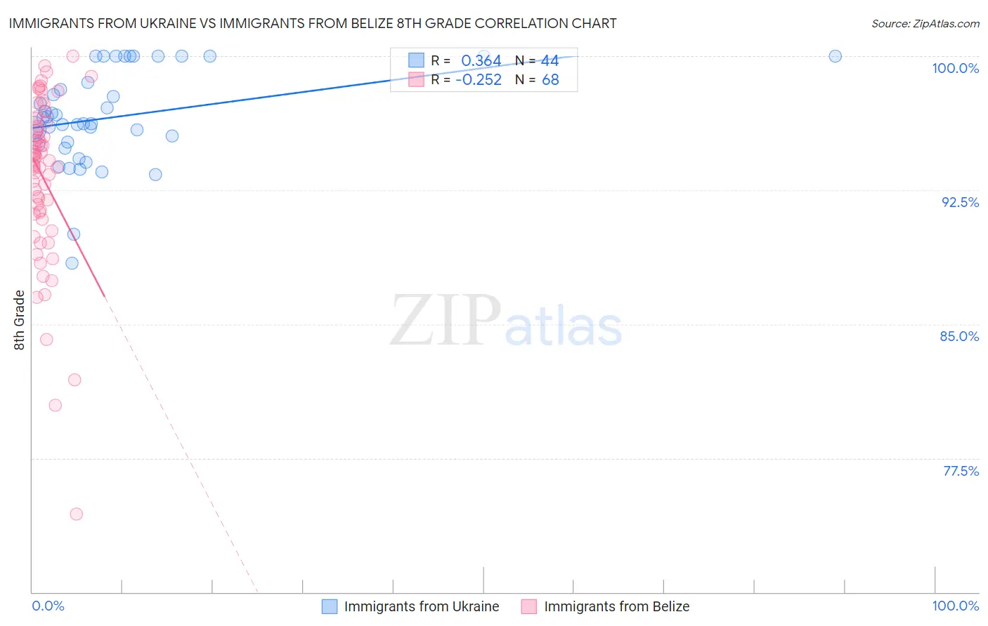 Immigrants from Ukraine vs Immigrants from Belize 8th Grade Correlation Chart