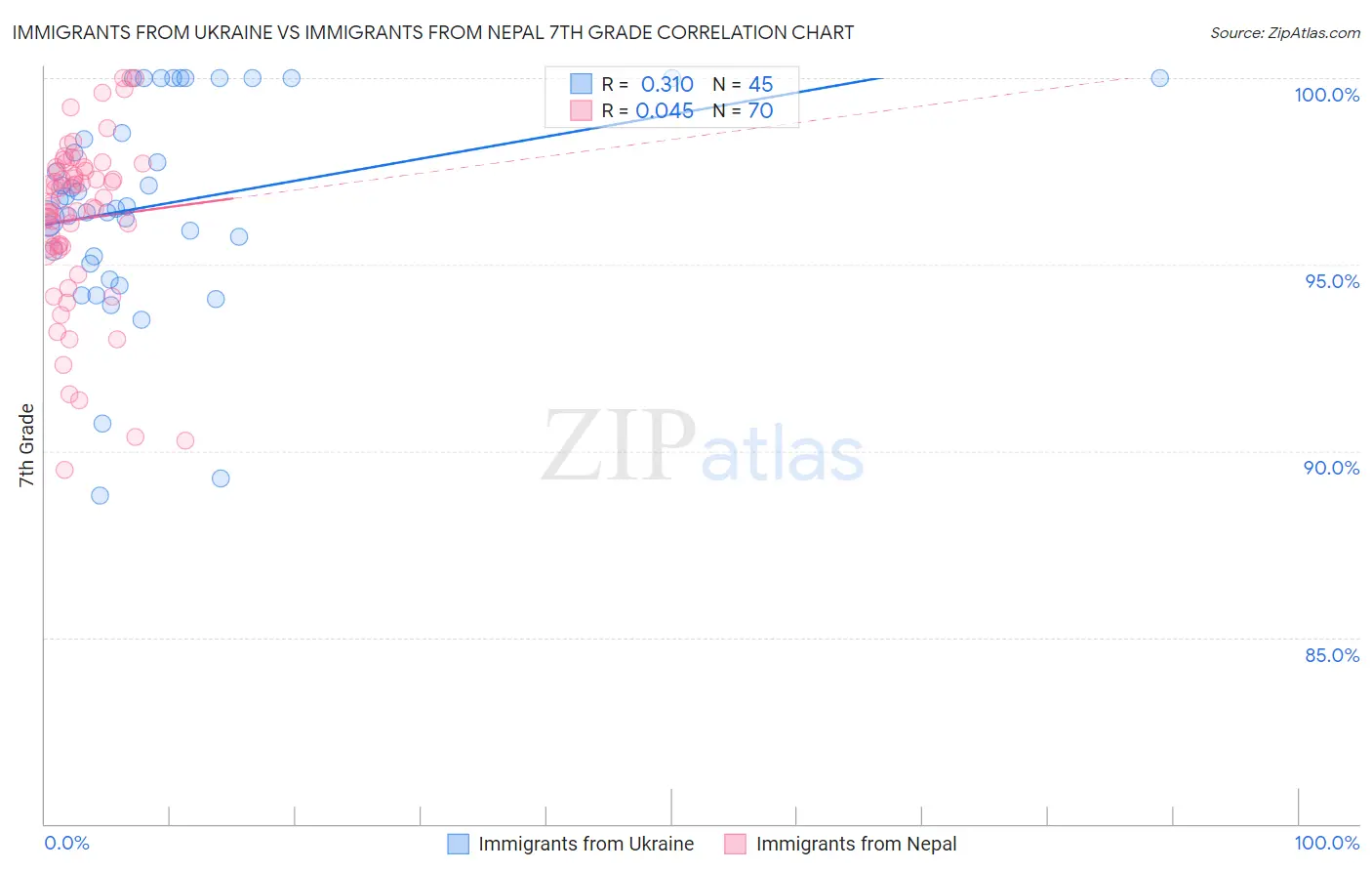 Immigrants from Ukraine vs Immigrants from Nepal 7th Grade Correlation Chart