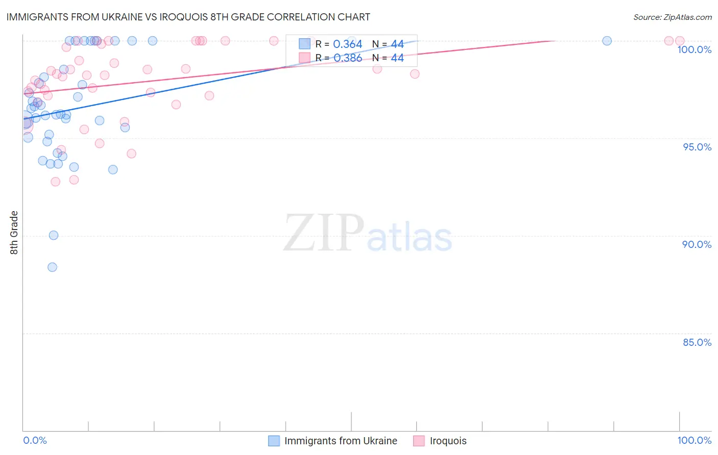 Immigrants from Ukraine vs Iroquois 8th Grade Correlation Chart
