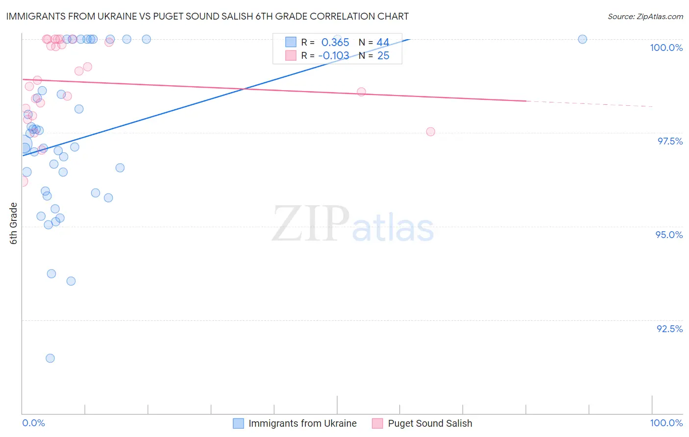 Immigrants from Ukraine vs Puget Sound Salish 6th Grade Correlation Chart