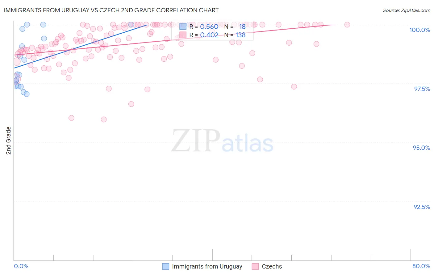 Immigrants from Uruguay vs Czech 2nd Grade Correlation Chart
