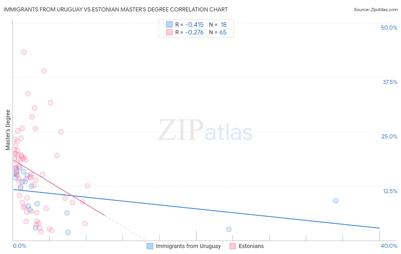 Immigrants from Uruguay vs Estonian Master's Degree Correlation Chart
