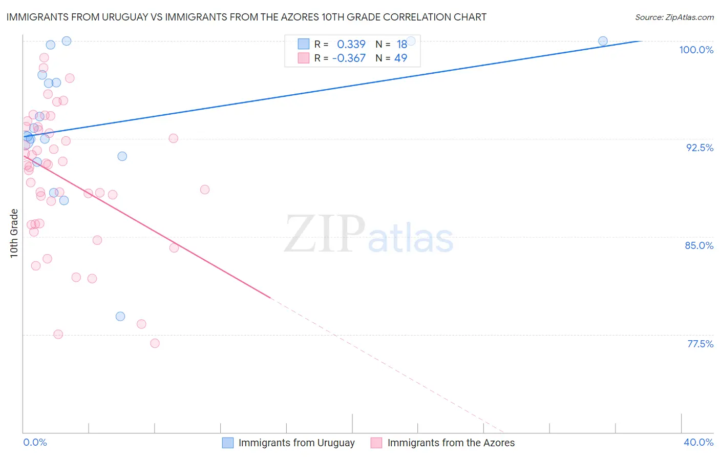 Immigrants from Uruguay vs Immigrants from the Azores 10th Grade Correlation Chart