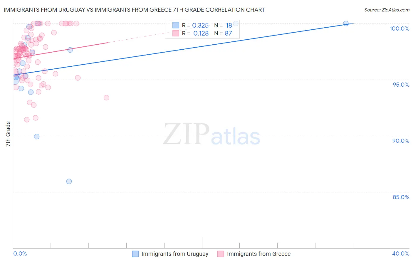 Immigrants from Uruguay vs Immigrants from Greece 7th Grade Correlation Chart