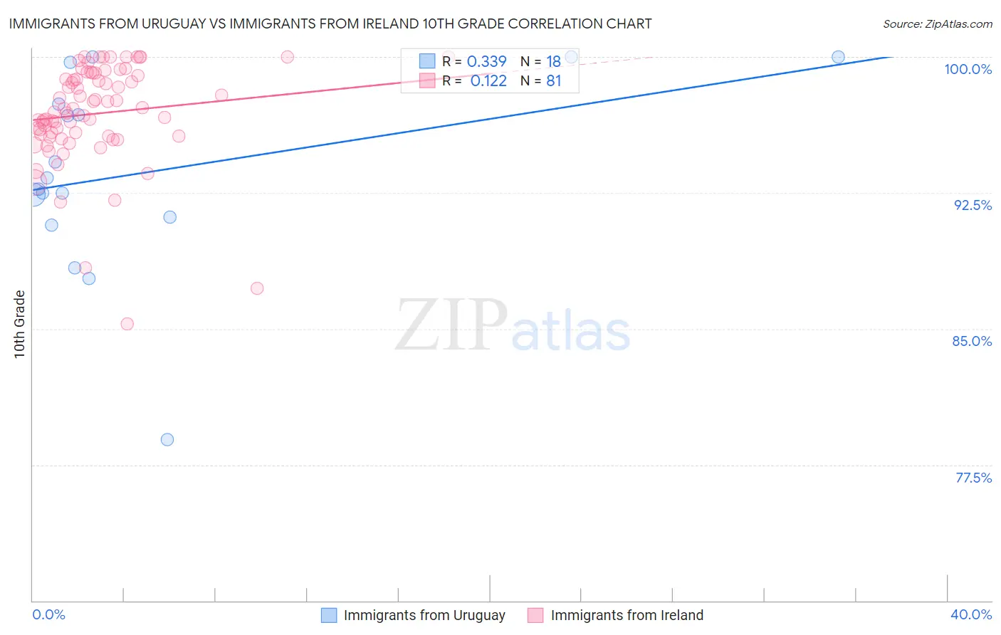 Immigrants from Uruguay vs Immigrants from Ireland 10th Grade Correlation Chart