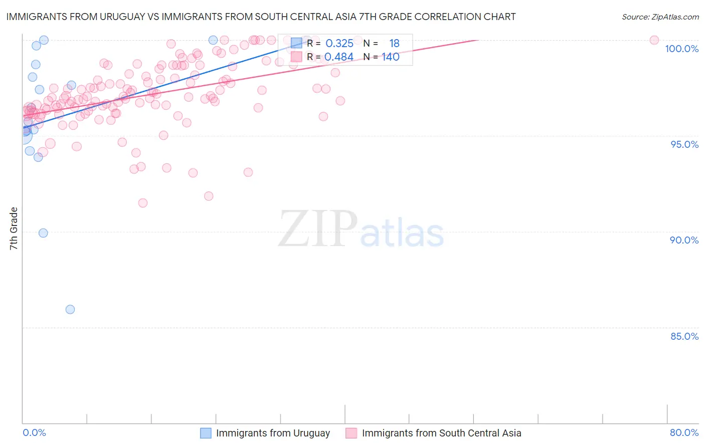 Immigrants from Uruguay vs Immigrants from South Central Asia 7th Grade Correlation Chart