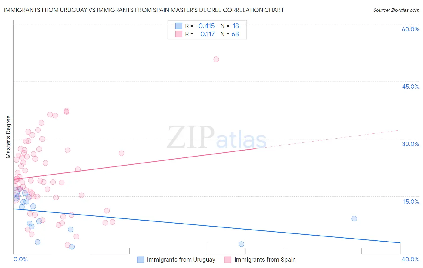 Immigrants from Uruguay vs Immigrants from Spain Master's Degree Correlation Chart