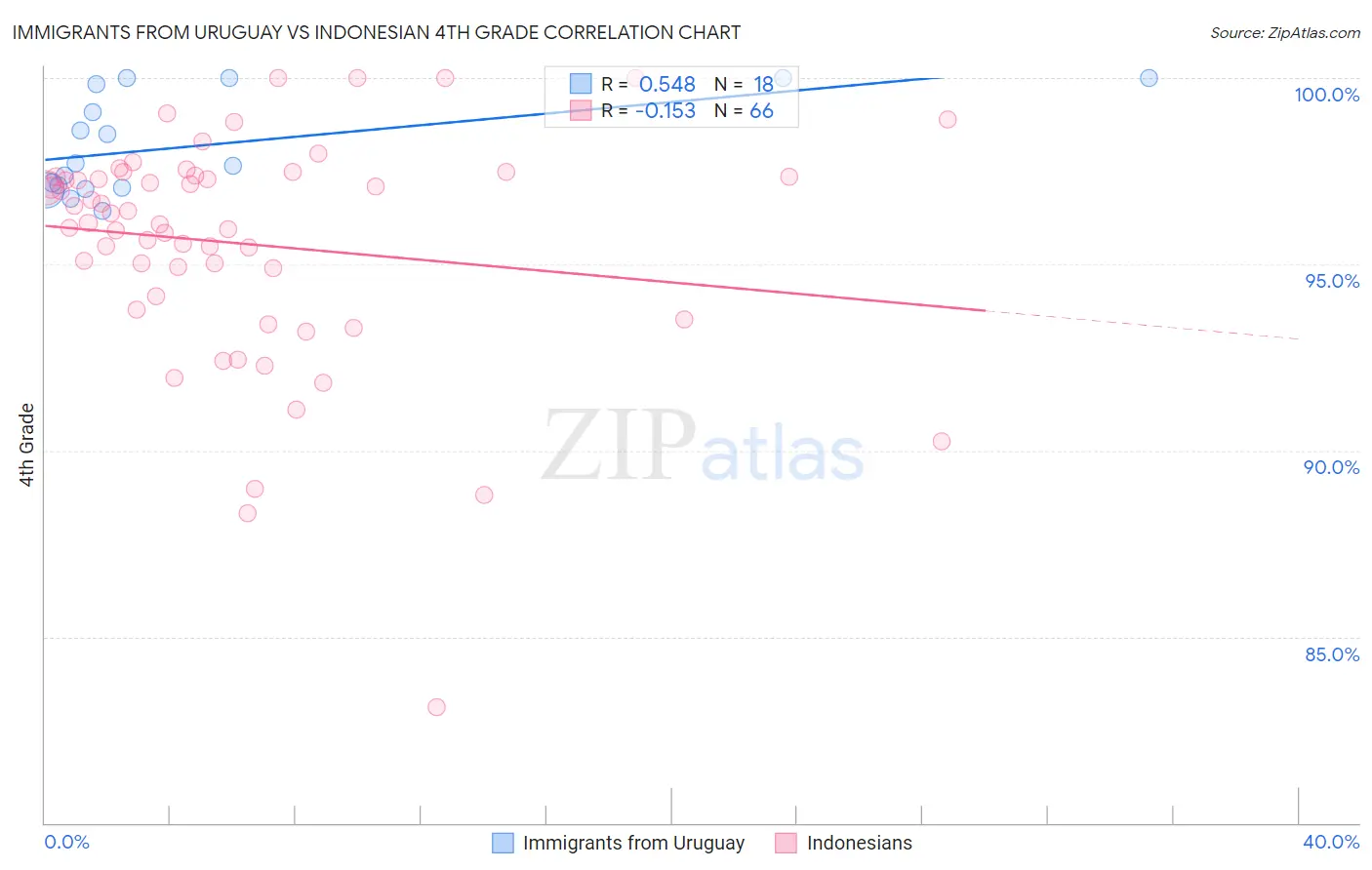 Immigrants from Uruguay vs Indonesian 4th Grade Correlation Chart