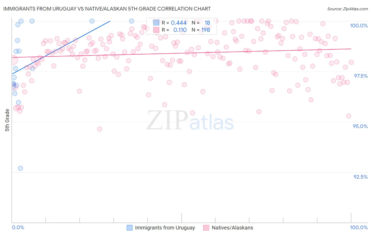 Immigrants from Uruguay vs Native/Alaskan 5th Grade