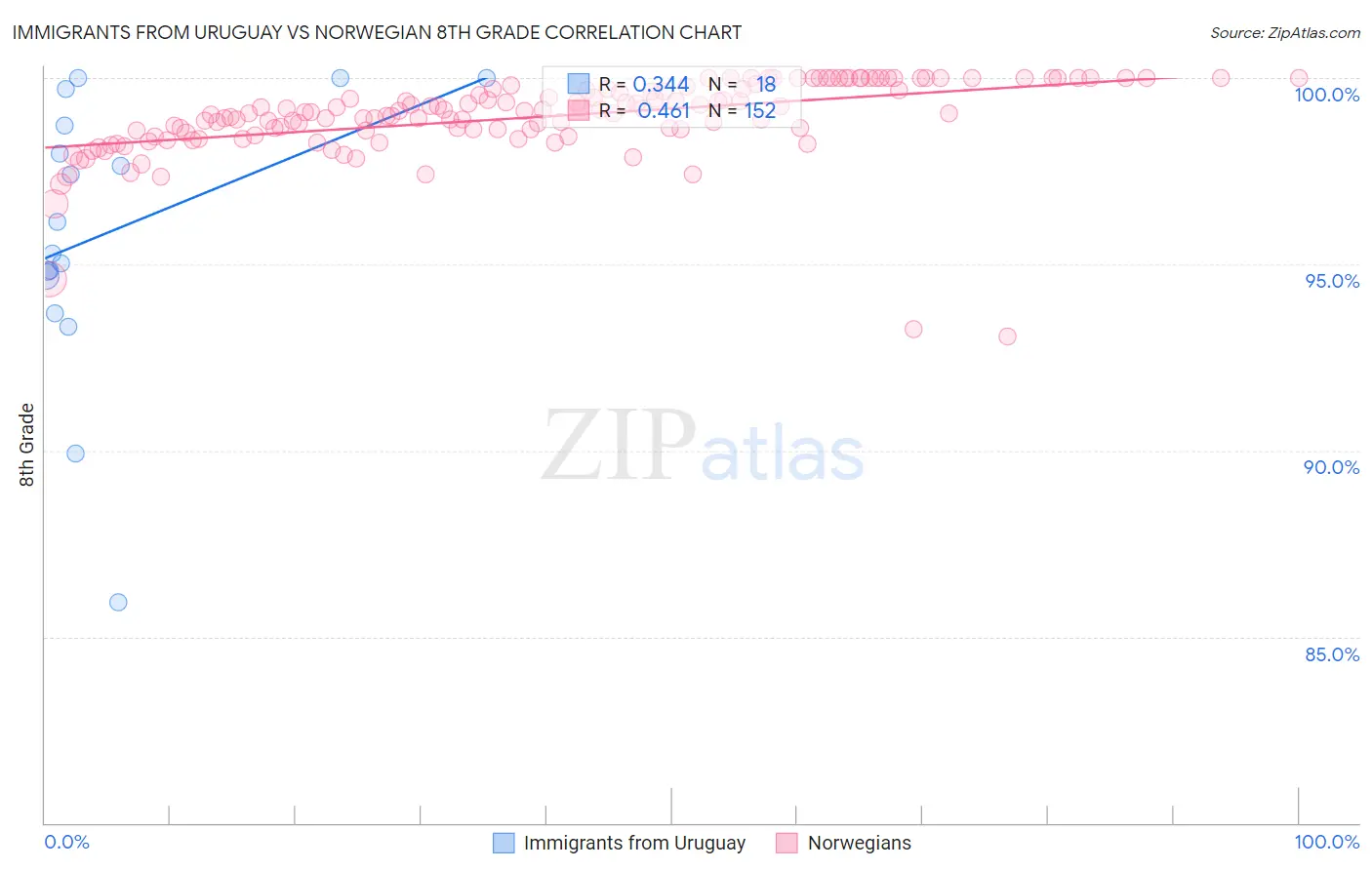 Immigrants from Uruguay vs Norwegian 8th Grade Correlation Chart