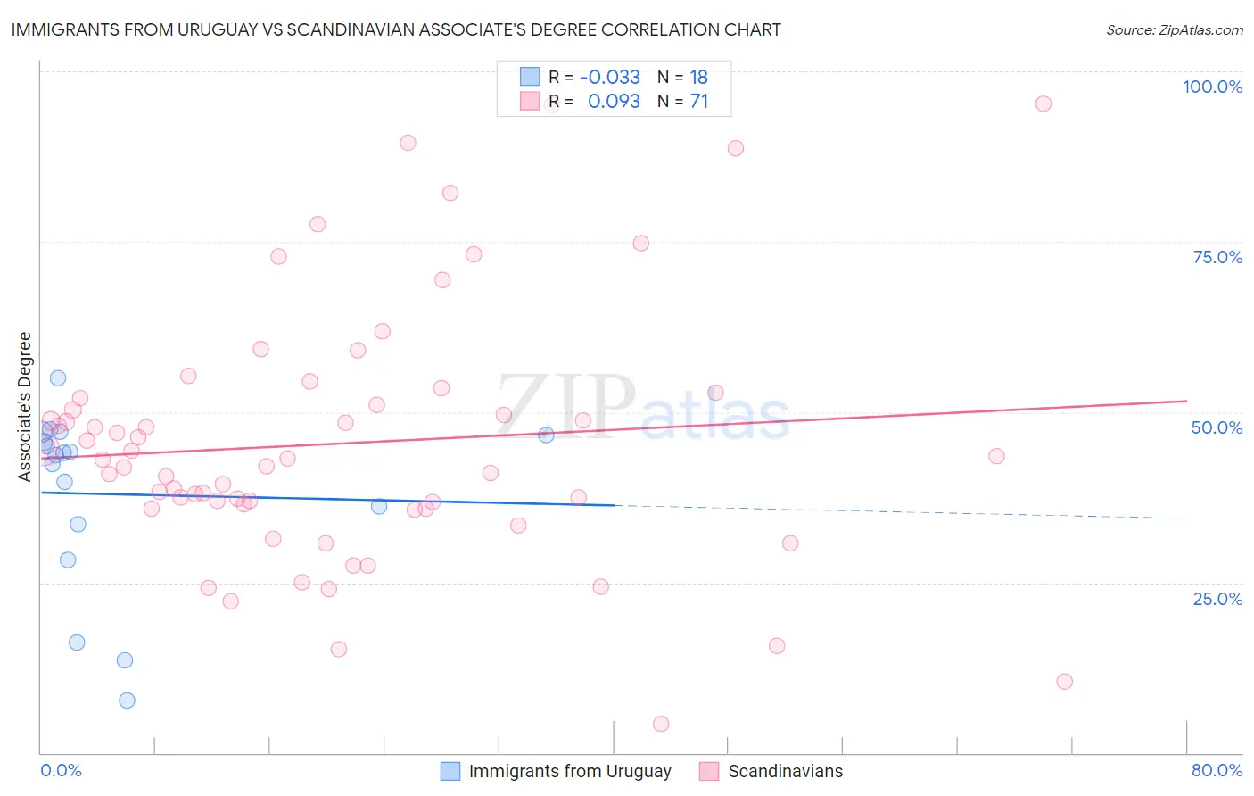 Immigrants from Uruguay vs Scandinavian Associate's Degree Correlation Chart