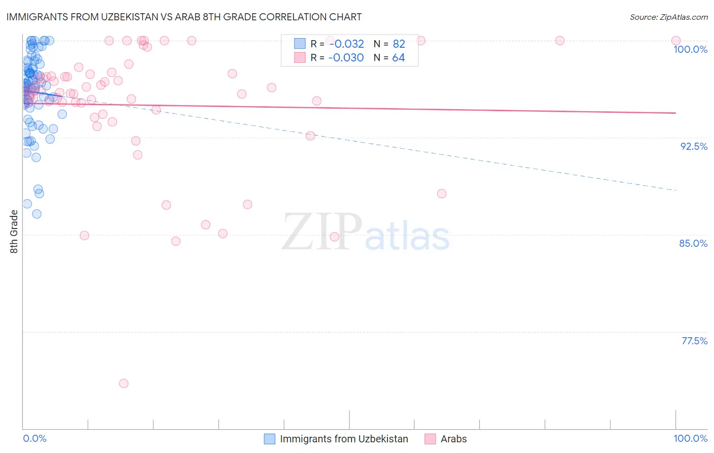 Immigrants from Uzbekistan vs Arab 8th Grade Correlation Chart