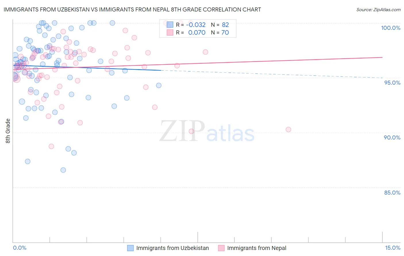 Immigrants from Uzbekistan vs Immigrants from Nepal 8th Grade Correlation Chart