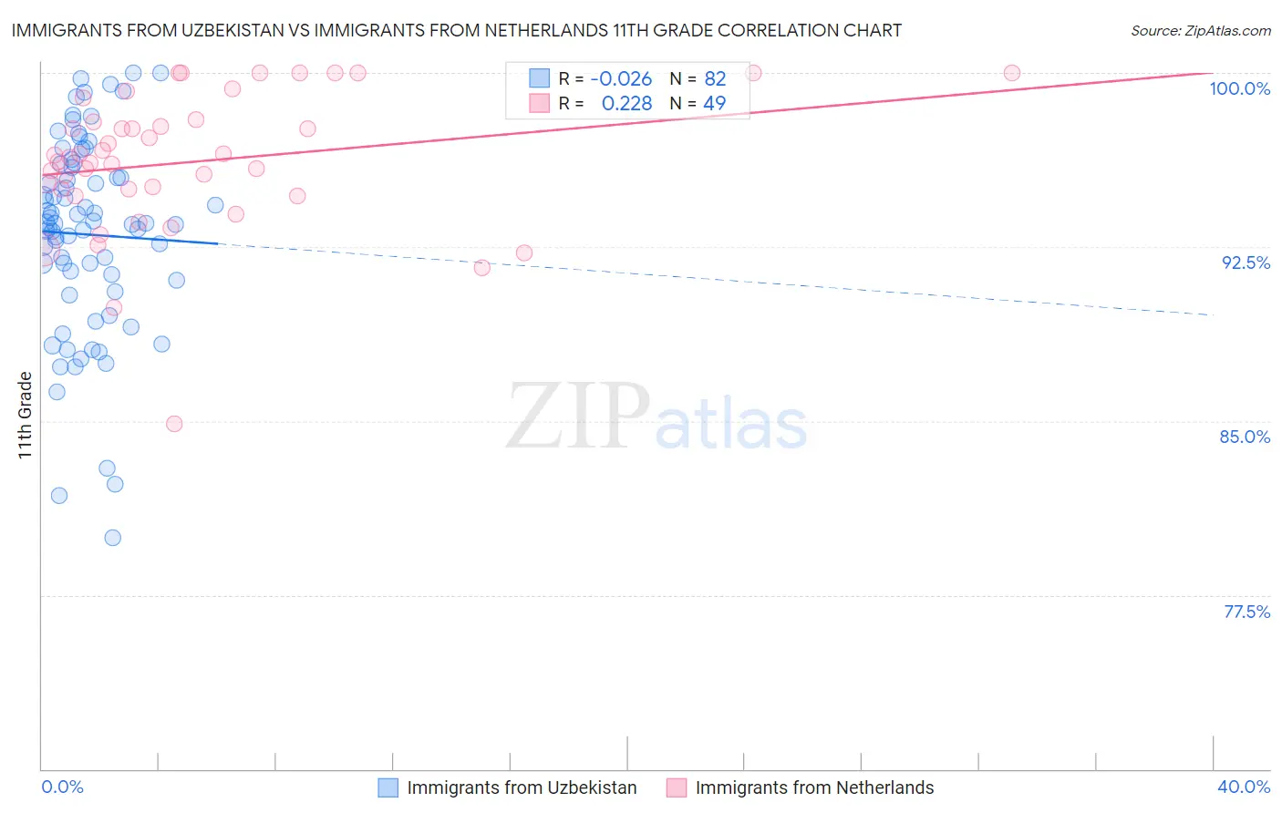 Immigrants from Uzbekistan vs Immigrants from Netherlands 11th Grade Correlation Chart