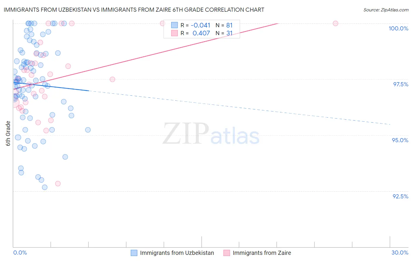 Immigrants from Uzbekistan vs Immigrants from Zaire 6th Grade Correlation Chart
