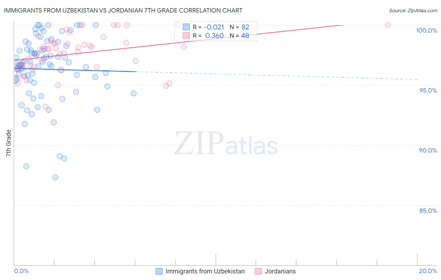 Immigrants from Uzbekistan vs Jordanian 7th Grade Correlation Chart