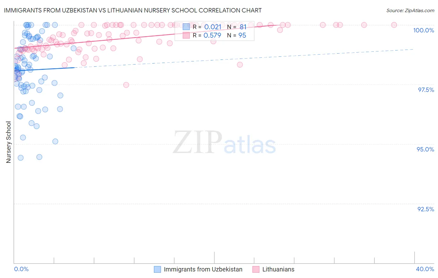 Immigrants from Uzbekistan vs Lithuanian Nursery School Correlation Chart