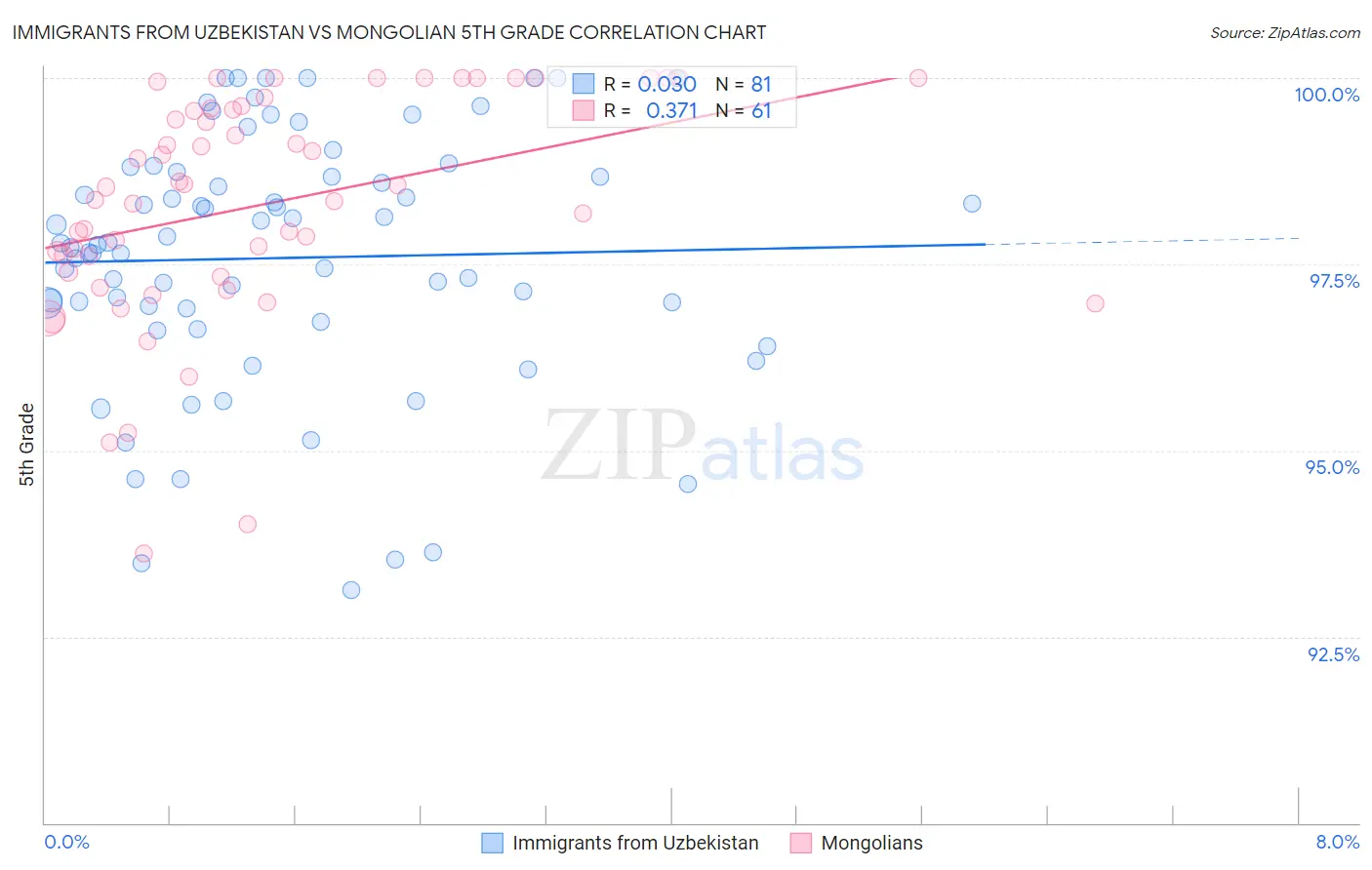 Immigrants from Uzbekistan vs Mongolian 5th Grade Correlation Chart